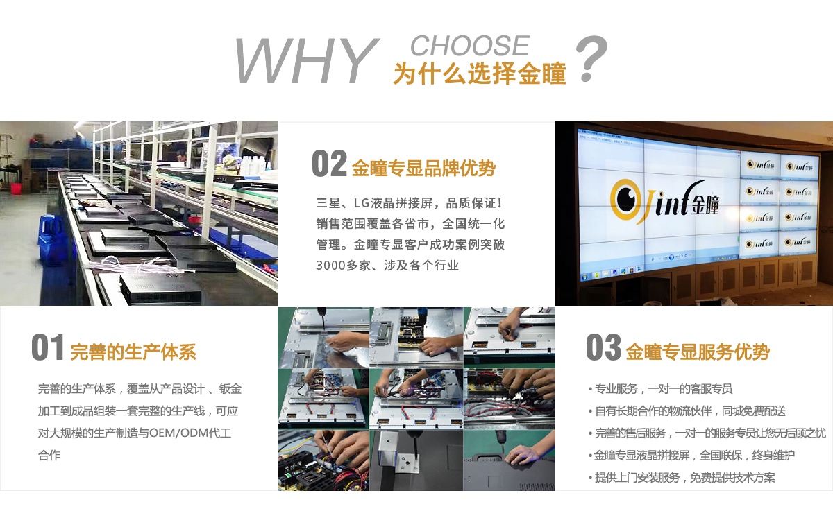 公司擁有多位有工程師認(rèn)證資格和顯示設(shè)備行業(yè)多年研發(fā)經(jīng)驗(yàn)的資深研發(fā)團(tuán)隊(duì),具備強(qiáng)大的軟、硬件研發(fā)能力,致力于各種拼接屏的深度開(kāi)發(fā)、生產(chǎn)和銷售。多年來(lái)已為不同行業(yè)企業(yè)用戶量身定制精彩合理的商用顯示解決方案,我們生產(chǎn)的拼接屏已廣泛應(yīng)用于安防、教育、醫(yī)院、政府、公安、銀行、酒店、交通、樓宇、商場(chǎng)、影院、娛樂(lè)等事業(yè)單位。目前已成功服務(wù)15個(gè)細(xì)分行業(yè),3000多個(gè)項(xiàng)目,是商用顯示系統(tǒng)解決方案供應(yīng)商!