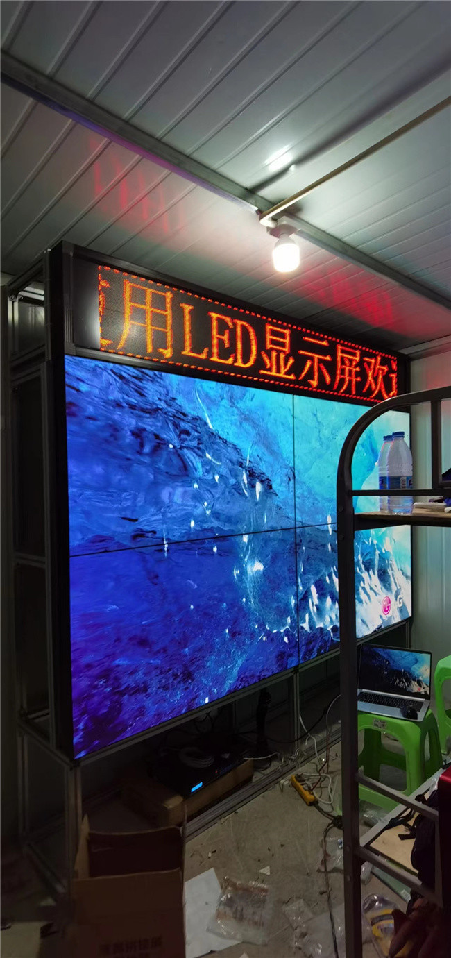 云南邵通永善縣某工地監控室55寸3.5mm2X2+LED條屏+落地支架